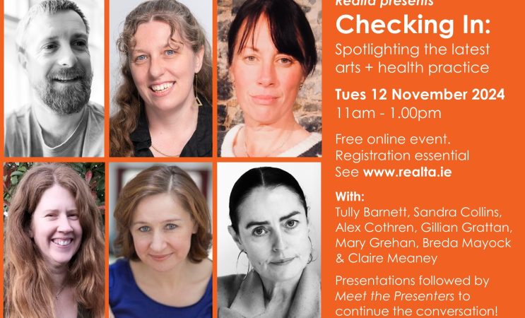 Réalta the national organisation dedicated to developing arts + health in Ireland, is excited to announce its upcoming virtual event Checking In 2024. This online gathering of the arts and health community in Ireland, will take place on Tuesday 12 November from 11am – 1pm.