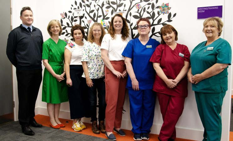 Photo (l-r): James Nolan, Chairperson, Punchestown Kidney Research Fund; Maeve Butler, Asst Director, Réalta/Waterford Healing Arts; Kate Murphy, Artist; Pauline Atkinson, Patient & Chair of the Wexford Branch of the Irish Kidney Association (IKA); Claire Meaney, Director, Réalta/Waterford Healing Arts; Carolann Flynn, Interim Unit Manager, Catherine Nunan, Clinical Nurse Specialist and Mary Coyne, Staff Nurse, BBraun Wellstone Wexford Renal Care Centre.